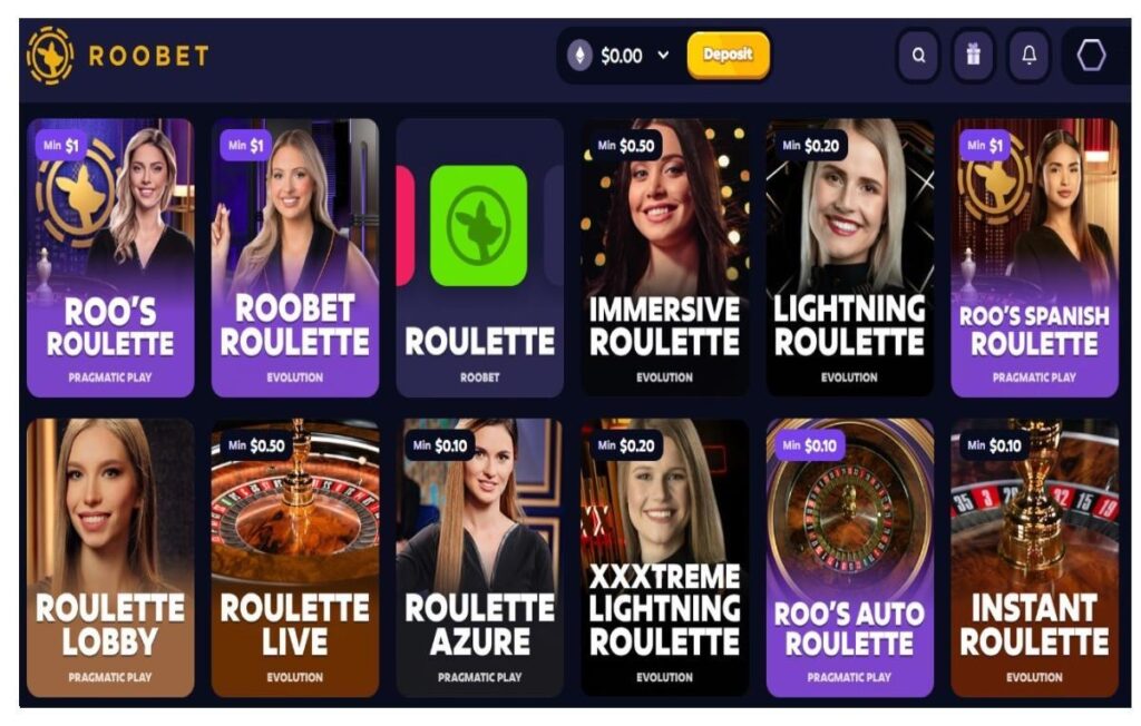 A screenshot of Roobet’s roulette games page